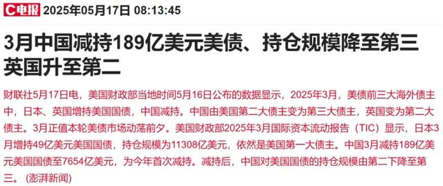 当好意思国财政日益吃紧,需要各人资金接盘好意思债的时间,中国顺应减持,尽头于在研究桌上多放了一张王牌。等好意思国急了,就得在关税、本事、投资等议题上作念出更多退让,来调换中国陆续持有好意思债。
