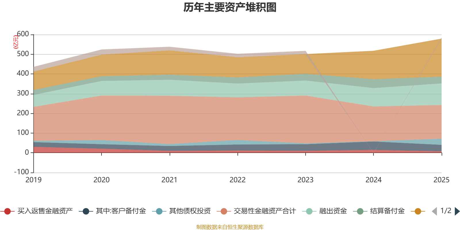 资产紧要变化方面,截止2025年末,公司其他债权投资较上年末加多2651.59%,占公司总资产比重飞腾5.16个百分点;货币资金较上年末加多33.94%,占公司总资产比重飞腾5.11个百分点;往复性金融资产共计较上年末减少2.9%,占公司总资产比重下跌4.86个百分点;结算备付金较上年末减少24.93%,占公司总资产比重下跌2.96个百分点。